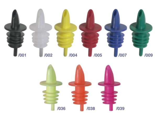 Flaschenausgießer, aus Polyethylen, passend auf 0,7 und 1,5 l Flaschen, Dosierung durch Unterbrechung der Luftzufuhr am Belüftungsloch