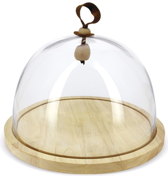 Holzplatte mit Glasglocke, H:25cm, Ø30.5cm, klar