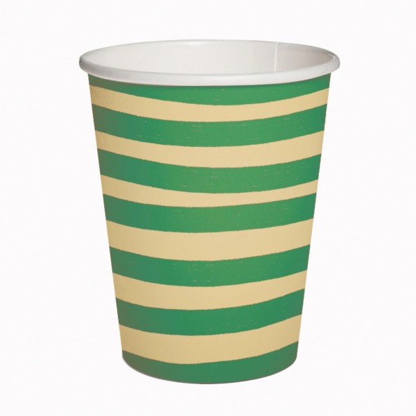 Pappbecher 8x Streifen beige/grün, 9.5x5.5x8cm - 0.25l