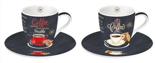 2er Set Its coffee time Espresso Obertasse m. Untertass