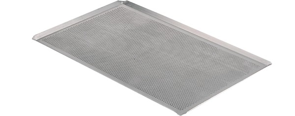 Rechteckiges, mikroperforiertes Backblech mit schrägen Kanten aus unbeschichtetem Aluminium.... mehr