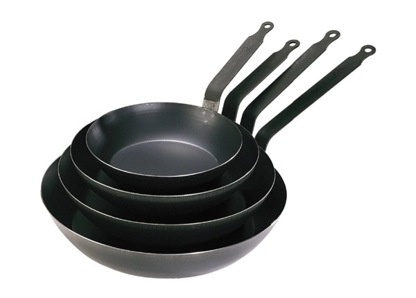 Runde Pfanne, ideal zum Anbraten, Grillen und Bräunen von geschnetzeltem Fleisch, unempfindlichem Fisch, Eiern usw. Nach Lyoner Art geschnitten, damit die Speisen leicht in eine Schüssel gleiten. Thermisch gebläuter Walzstahl: zeitweiliger Schutz gegen das Oxidieren; ohne Beschichtung. Eine leichte, einfach zu handhabende Produktreihe. Ideal für Gas. Rascher Temperaturanstieg, hervorragende Karamelisierung des Safts. Das allmähliche Einbrennen sorgt für natürliche Antihafteigenschaften. Verschweißter, à la française gekrümmter Stahlstielgriff: einfache und ergonomische Handhabung. Tipp: mit wenig Fett vorheizen. Einbrennen vor der ersten Verwendung erforderlich. Pflege: Mit Wasser ablöschen, mit warmem Wasser abspülen, abtrocknen und leicht einölen. An einem trockenen Ort aufbewahren. Keine Reiniger verwenden und nicht im Geschirrspüler waschen. Für alle Herdarten AUSSER Induktion. Glaskeramikkochfelder nicht empfohlen.