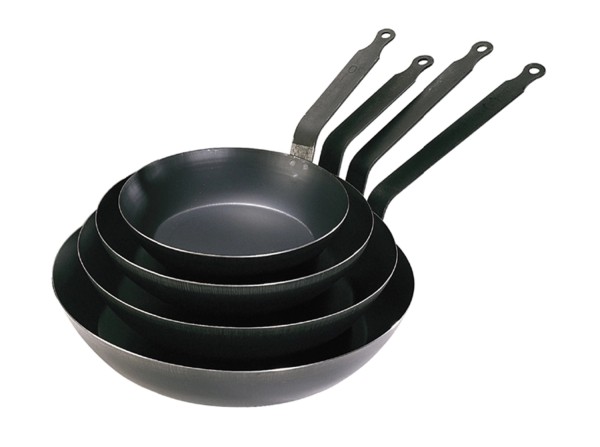 Runde Pfanne, ideal zum Anbraten, Grillen und Bräunen von geschnetzeltem Fleisch, unempfindlichem Fisch, Eiern usw. Nach Lyoner Art geschnitten, damit die Speisen leicht in eine Schüssel gleiten. Thermisch gebläuter Walzstahl: zeitweiliger Schutz gegen das Oxidieren; ohne Beschichtung. Eine leichte, einfach zu handhabende Produktreihe. Ideal für Gas. Rascher Temperaturanstieg, hervorragende Karamelisierung des Safts. Das allmähliche Einbrennen sorgt für natürliche Antihafteigenschaften. Verschweißter, à la française gekrümmter Stahlstielgriff: einfache und ergonomische Handhabung. Tipp: mit wenig Fett vorheizen. Einbrennen vor der ersten Verwendung erforderlich. Pflege: Mit Wasser ablöschen, mit warmem Wasser abspülen, abtrocknen und leicht einölen. An einem trockenen Ort aufbewahren. Keine Reiniger verwenden und nicht im Geschirrspüler waschen. Für alle Herdarten AUSSER Induktion. Glaskeramikkochfelder nicht empfohlen.