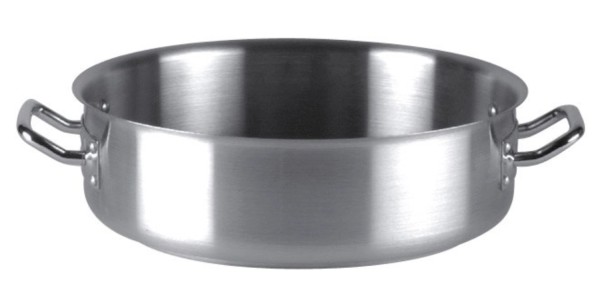 9 mm starker Kapselboden. Der Körper ist matt poliert, der Schüttrand und Griffe sind hochglanzpoliert. Ohne Deckel. Für alle Herdarten, inkl. Induktion. Spülmaschinengeeignet.