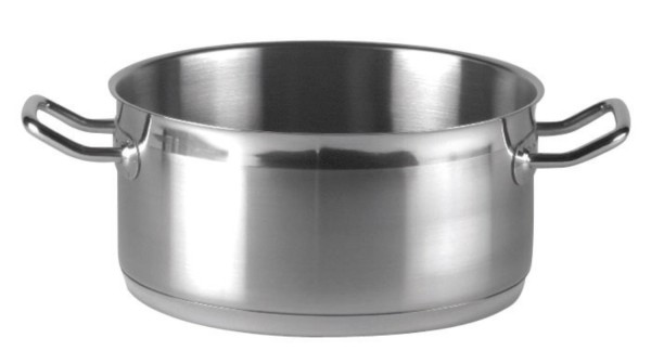 9 mm starker Kapselboden. Der Körper ist matt poliert, der Schüttrand und Griffe sind hochglanzpoliert. Ohne Deckel. Für alle Herdarten, inkl. Induktion. Spülmaschinengeeignet.