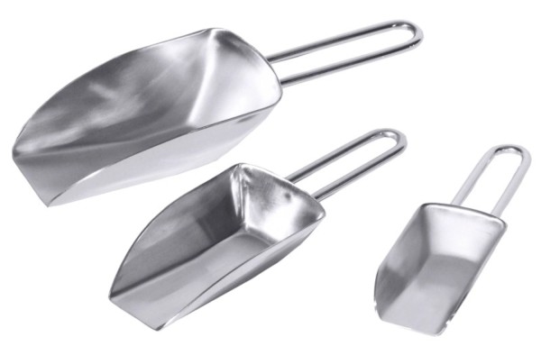 Dosierschaufel, aus Edelstahl 18/10, hochglänzend, mit Drahtgriff, geeignet für Gewürzdosen oder auch als Eisschaufel