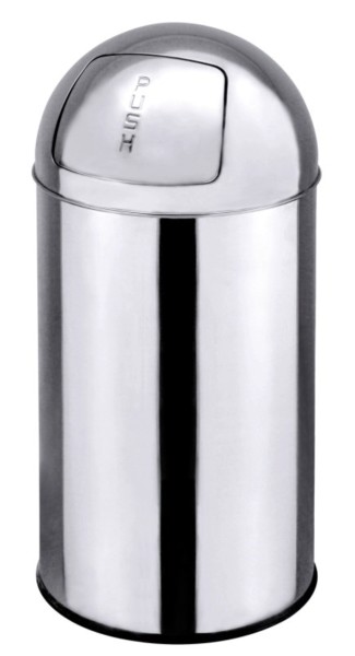 PUSH-Abfallbehälter, aus Edelstahl 18/0, hochglänzend, Klappe mit Federmechanismus, Innenbehälter mit Tragebügel aus verzinktem Stahlblech